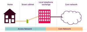 The system we have at present. Existing access networks use old, copper telephone lines, so that the further you are from an exchange, the slower your broadband is – if you get broadband at all. In rural areas, this can be a very great distance indeed.