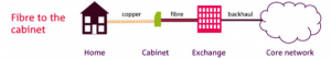 Fibre to the cabinet. This is a possible model for broadband delivery in which the final portion of the access network, from the cabinet to the home, continues to use your existing copper line. ‘Up to’ 40 Mbps is possible, but not likely. You have to be within 300 metres of the cabinet for it to work. You also have to have a good line to the cabinet.