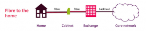 Fibre to the home or fibre to the premises. This is true next generation access where the fibre connection reaches the home or business. There are no bottlenecks to stop the flow of data. Data is symmetrical, with the same upload speed as download speed.